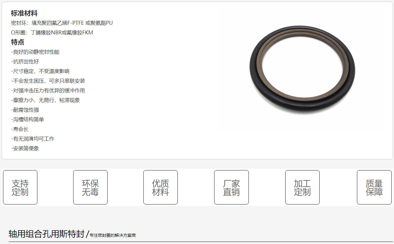 良好的动静密封性能,抗挤出性好,形状是O型密封圈,压力机、挖掘机、冶金机械、装载机、化工机械
