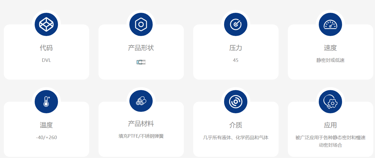 在气体和流体用途中密封能力好-初始密封力大,防泄漏性好-可用于很大尺寸且不需要安装工具-能适应急剧的温度变化-在不理想表面的密封能力好-储存期无限